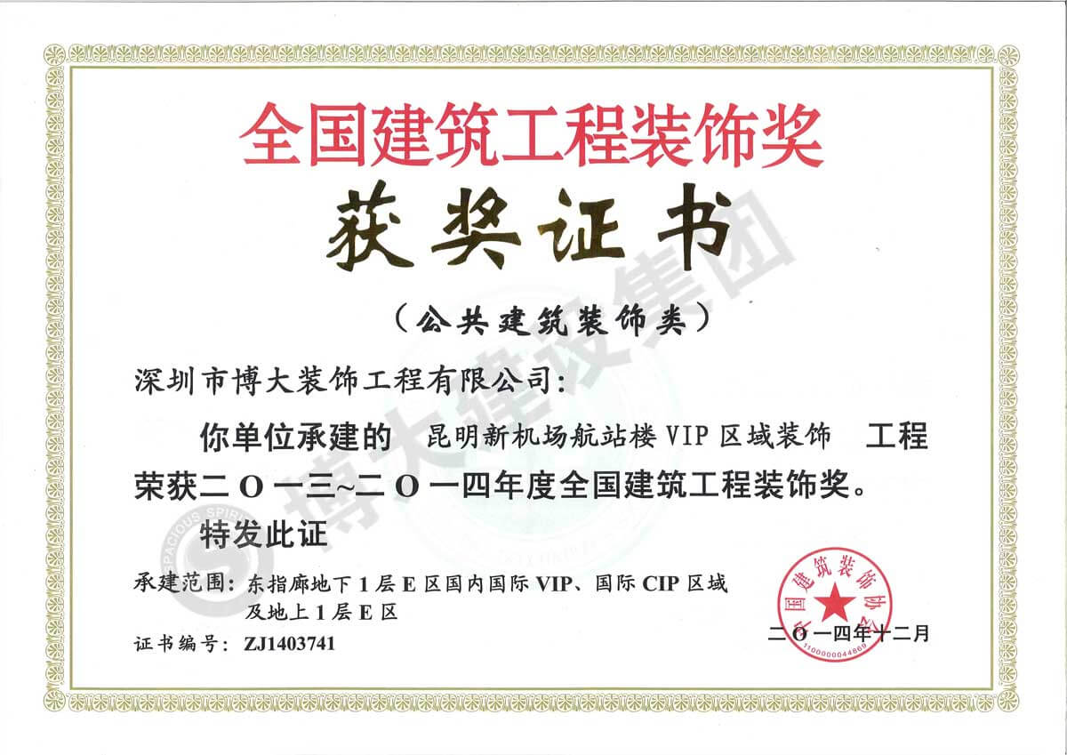 中國(guó)建筑工程裝飾獎(jiǎng)(昆明新機(jī)場(chǎng)航站樓VIP-裝飾)