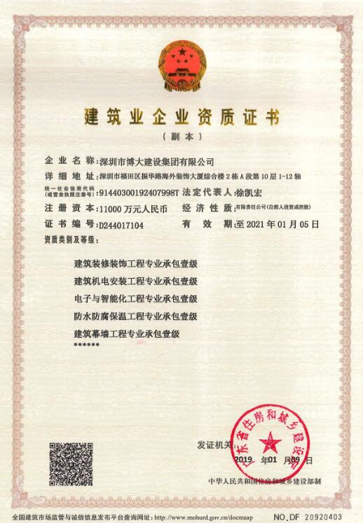 截止目前,博大共有11個壹級資質(zhì)————