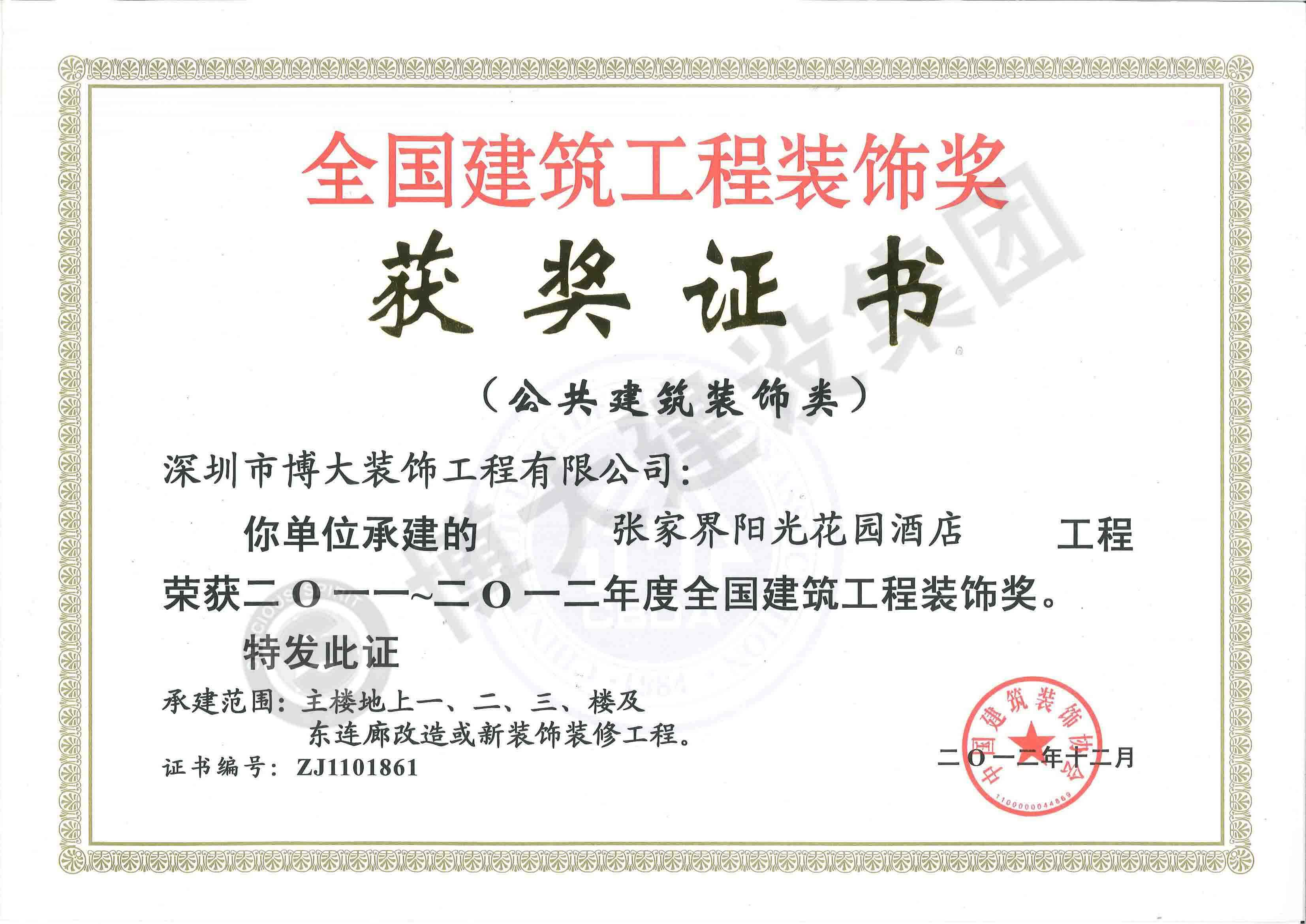 中國(guó)建筑工程裝飾獎(jiǎng)(張家界陽(yáng)光花園酒店-裝飾)