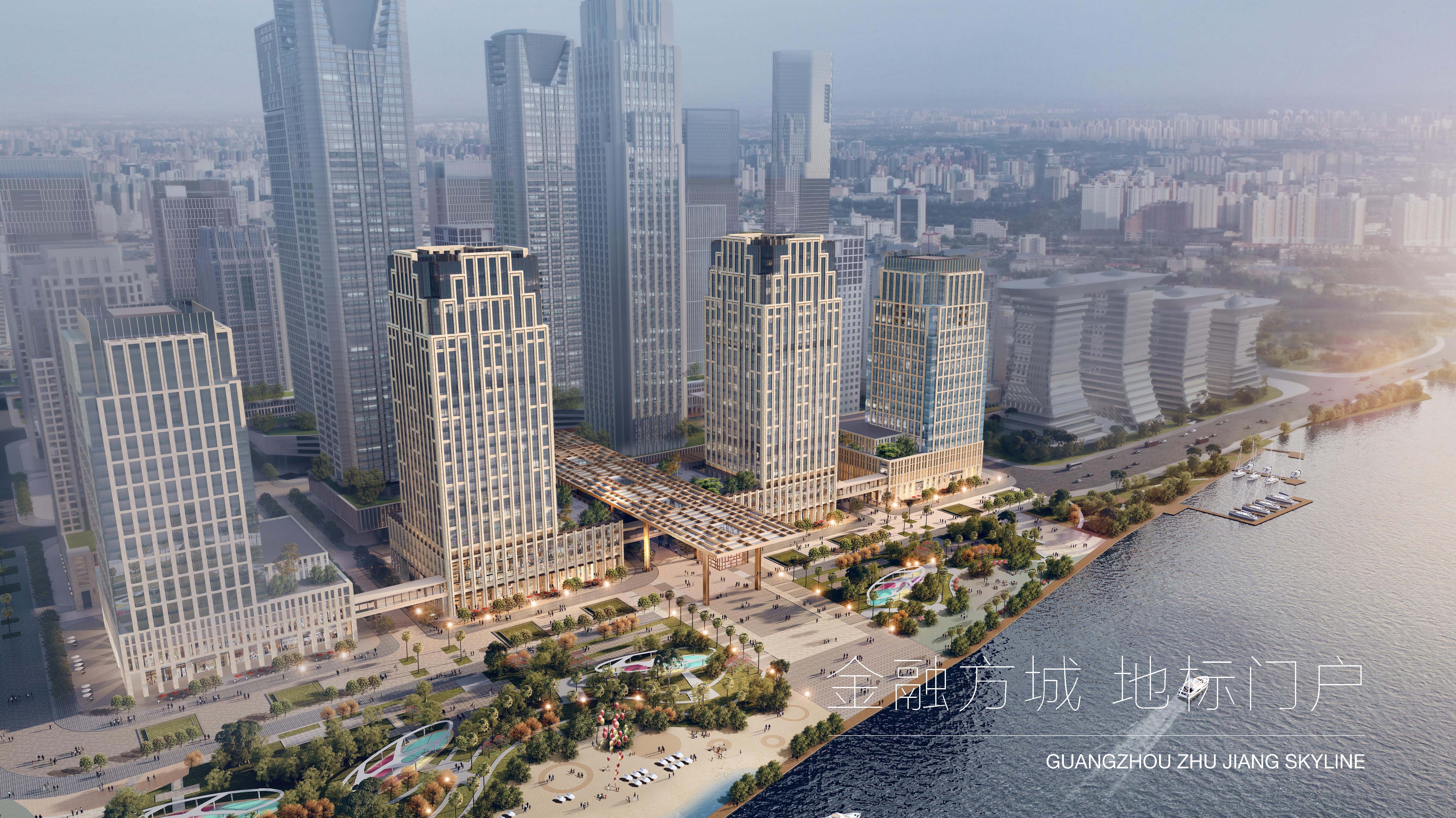 項(xiàng)目位于珠江北岸,緊鄰珠江新城中央商務(wù)區(qū),與琶洲國(guó)際會(huì)展中心隔江相望,是廣州三大CBD之一的國(guó)際金融城。以嶺南傳統(tǒng)騎樓的手法延續(xù)城市文脈,打造了一個(gè)類(lèi)似都市大平臺(tái)功能的相互連接的裙房,并在大平臺(tái)上設(shè)置了一系列的空中花園、城市觀賞連廊,從而塑造了廣州濱江的門(mén)戶(hù)形象。