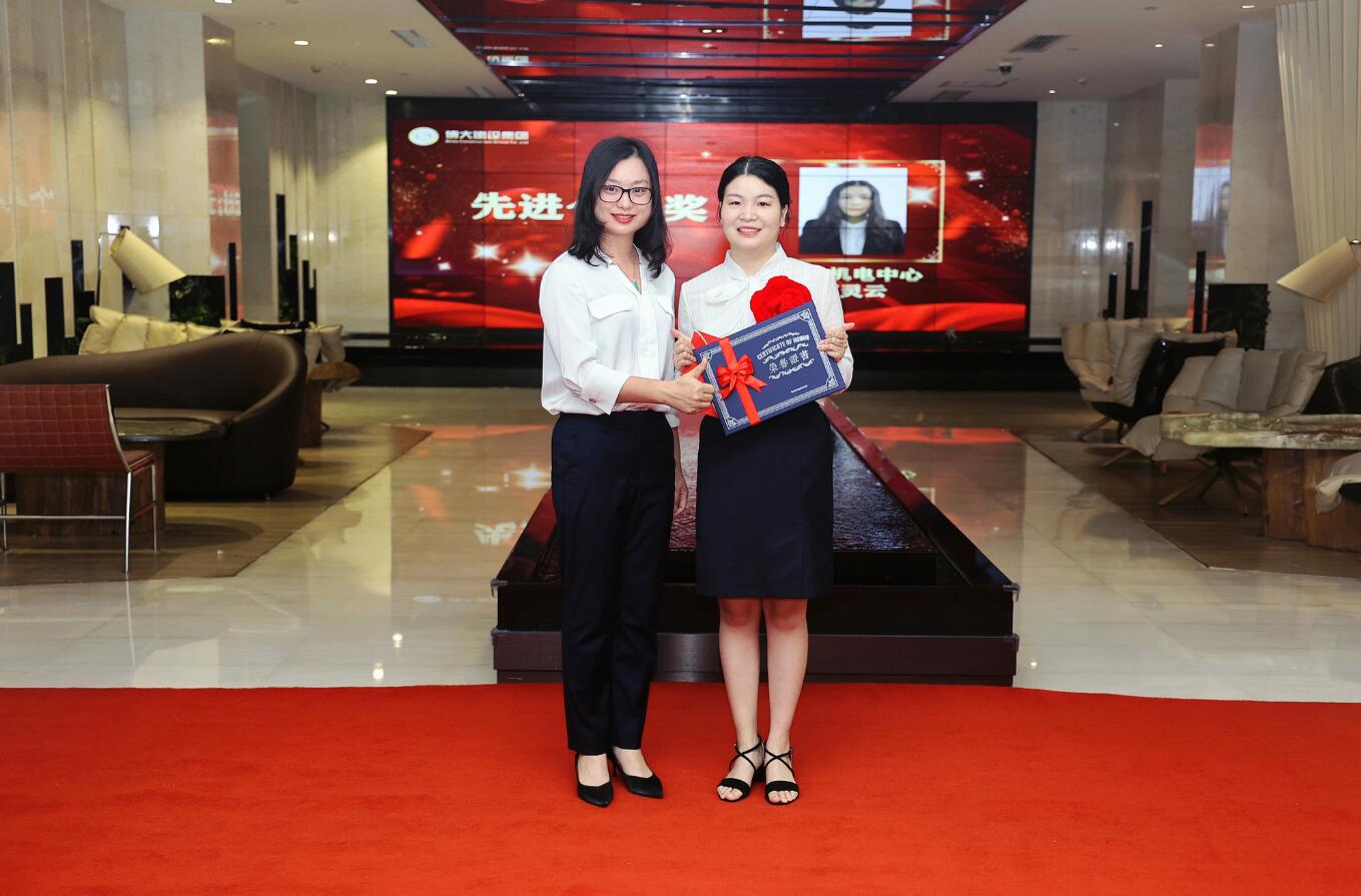 集團(tuán)董事楊丹鑾為先進(jìn)個(gè)人郭靈云頒獎(jiǎng)