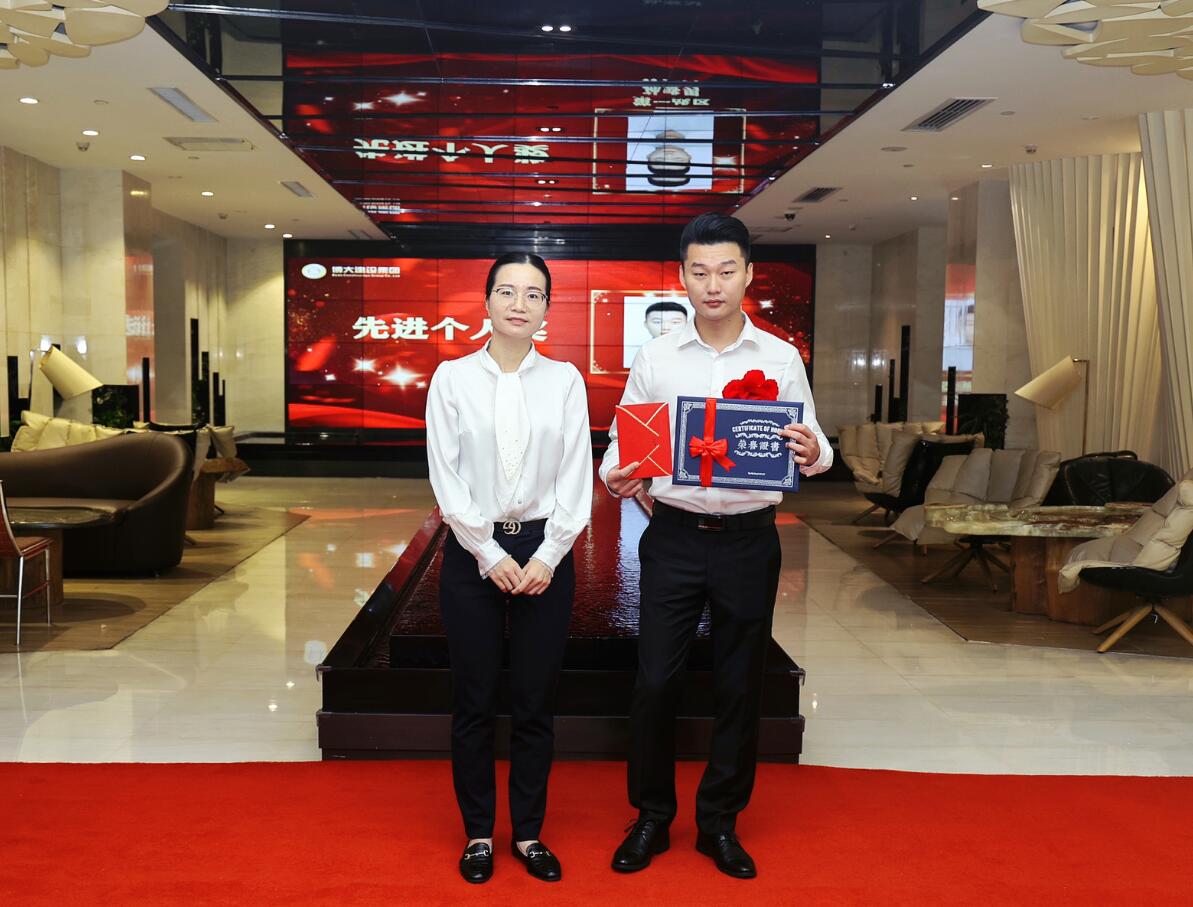 集團(tuán)董事、運(yùn)營總裁黃悠為銷售進(jìn)步獎(jiǎng)獲得者葉繼平頒獎(jiǎng)