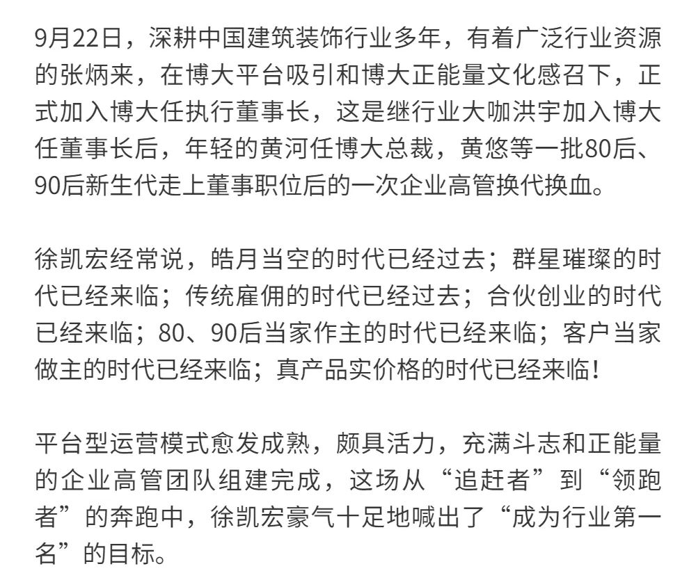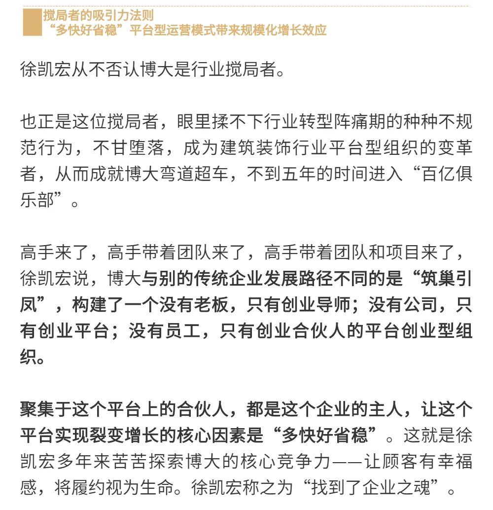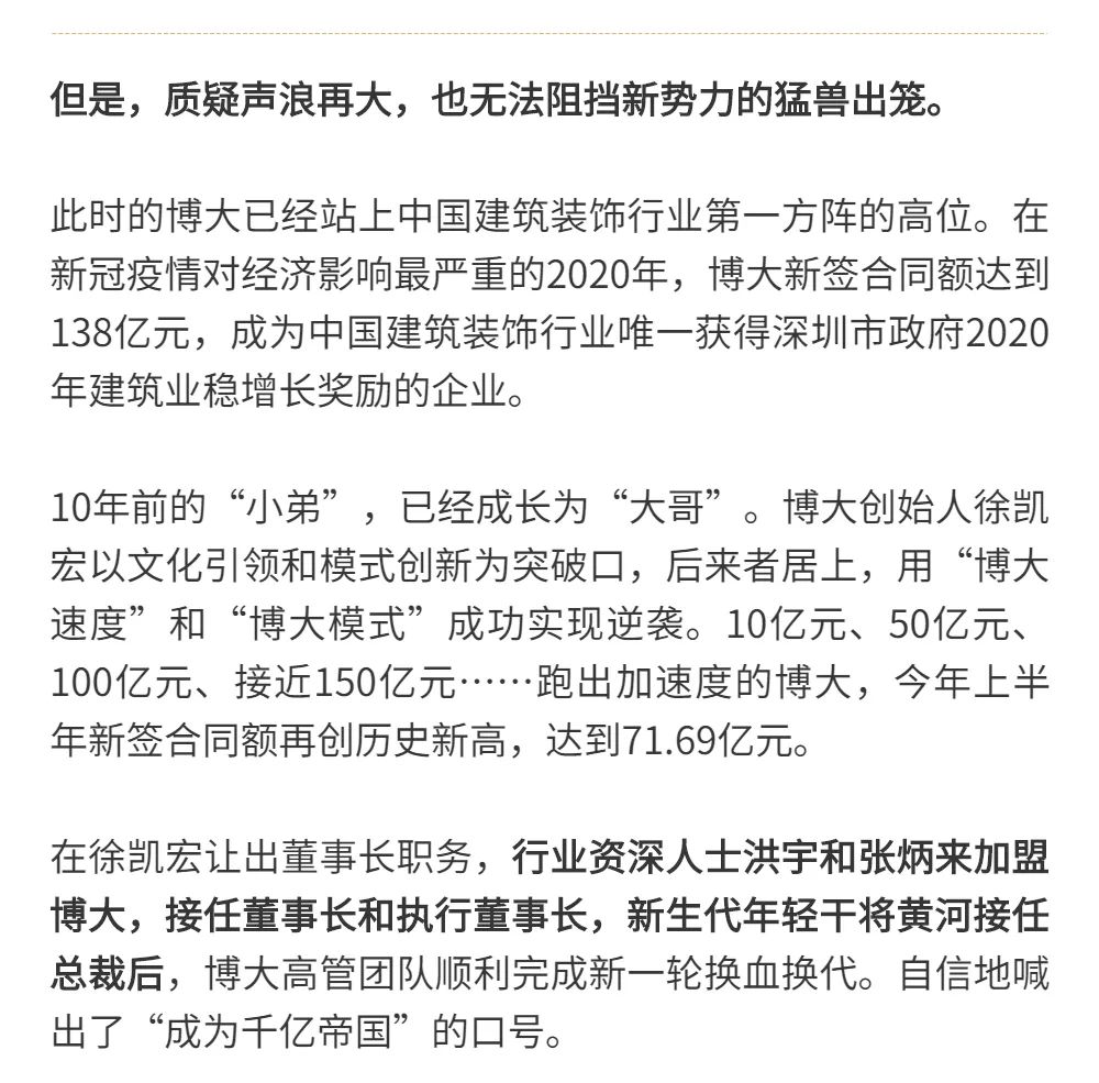 恰逢博大建設集團再次躍升至中國建筑裝飾行業(yè)百強第3名的喜訊,現(xiàn)把兩篇深度好文再次轉(zhuǎn)發(fā),以饗讀者。