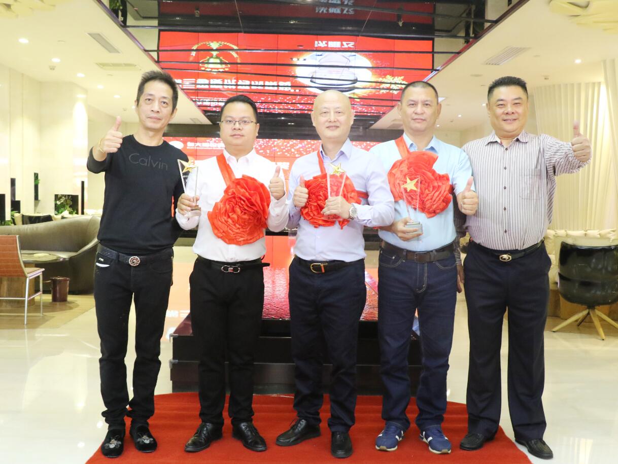 集團常務副總裁沈雁飛在集團業(yè)務拓展中做出突出貢獻,被授予優(yōu)秀成果獎,獎勵10萬元。圖為徐凱宏董事長、黃河副董事長與獲獎者合影留念。