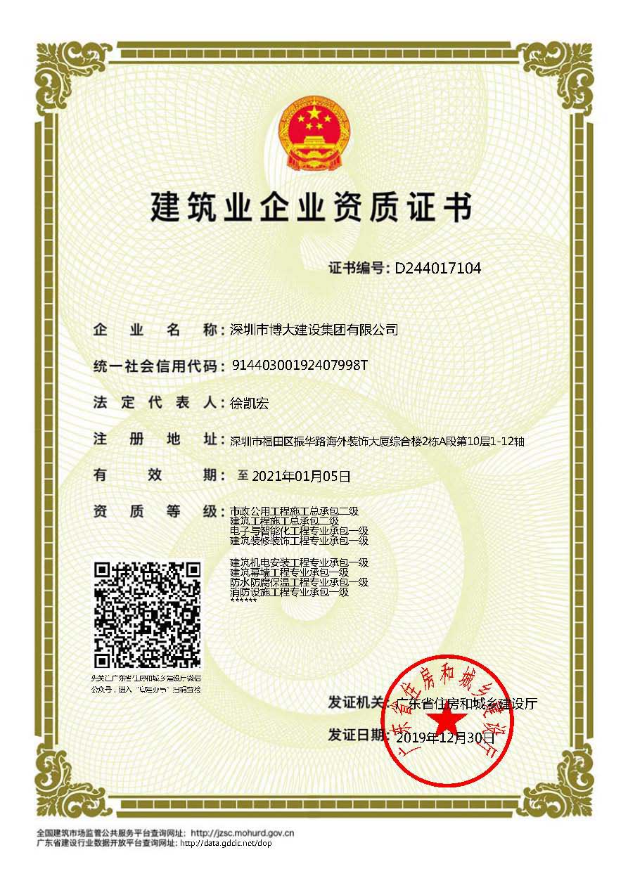 博大建設(shè)集團作為行業(yè)最具發(fā)展活力的領(lǐng)軍企業(yè),近年來發(fā)展速度迅猛,2019年繼續(xù)保持穩(wěn)步增長,業(yè)績過百億。在各級領(lǐng)導的關(guān)懷和全體家人的共同努力下,集團資質(zhì)建設(shè)取得新的進展,榮獲6項建筑資質(zhì)!