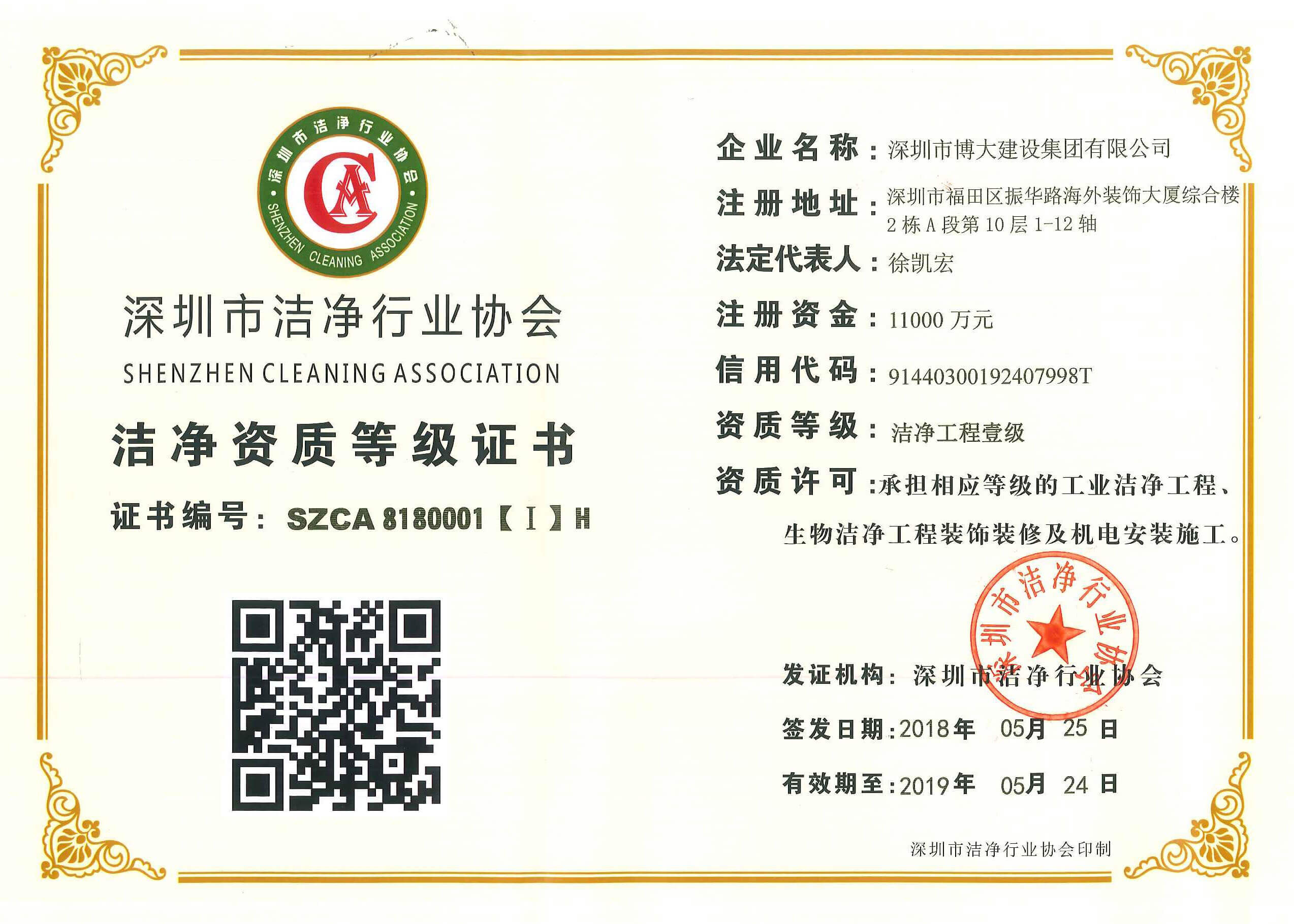 博大建設(shè)集團是行業(yè)最具發(fā)展活力的領(lǐng)軍企業(yè),各項事業(yè)突飛猛進,不斷得到社會各界的關(guān)注和認可。集團資質(zhì)建設(shè)又有新突破,順利獲得潔凈工程壹級資質(zhì)。繼獲得展覽工程企業(yè)壹級資質(zhì),展覽陳列工程設(shè)計與施工一體化壹級資質(zhì)之后,這是博大本月內(nèi)獲得的又一個壹級資質(zhì)。夢想有多高,收獲就有多大,博大平臺資質(zhì)建設(shè)速度前所未有。