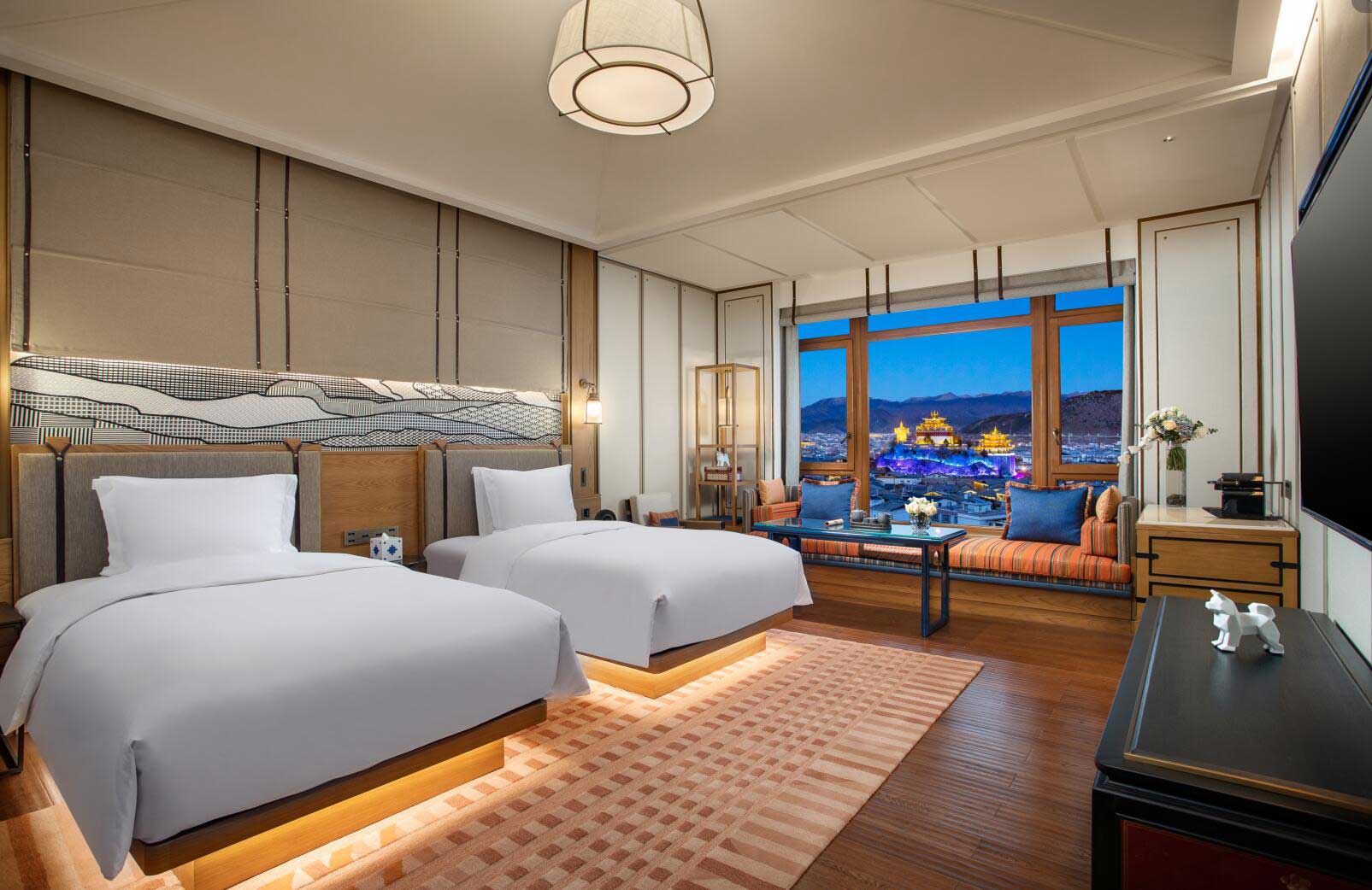房間設(shè)計(jì)從藏地文化中汲取靈感,寫意回溯香格里拉鄰間故事,打造兼具民族風(fēng)韻和現(xiàn)代舒適的下榻空間,點(diǎn)綴精挑細(xì)選的工藝品及特色壁畫,房間的角落和細(xì)節(jié)處處可見充滿本地風(fēng)情的鄰間文化。開窗見景,入室賞藝,高品質(zhì)客房設(shè)施營造了引人入勝的旅居氛圍。