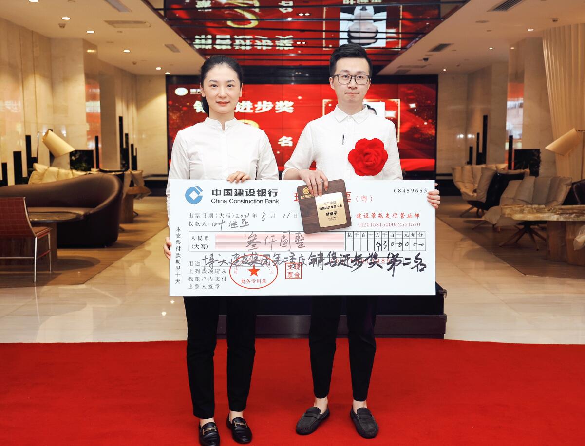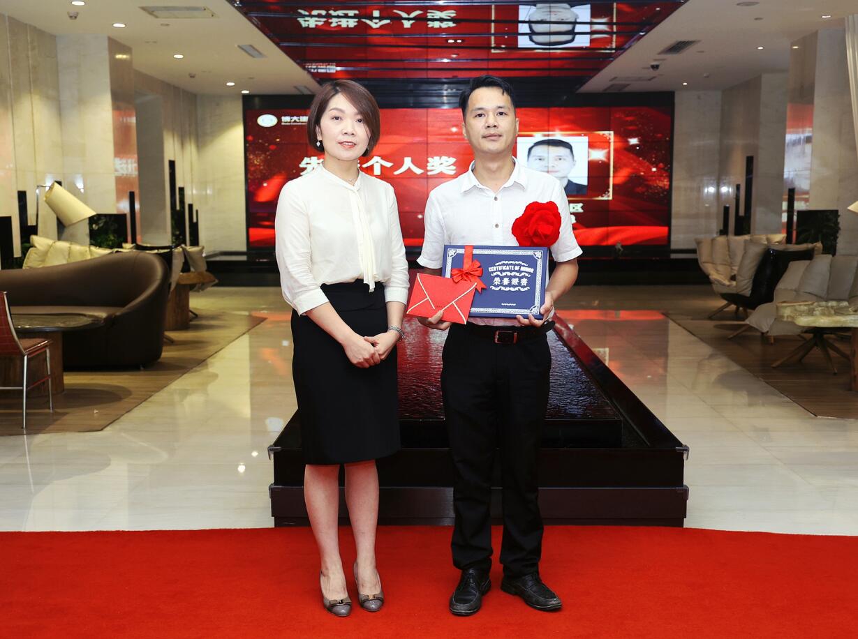 集團(tuán)董事、運(yùn)營總裁黃悠為銷售進(jìn)步獎(jiǎng)獲得者葉繼平頒獎(jiǎng)