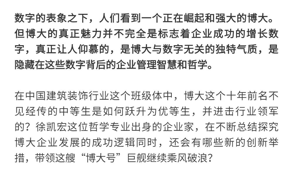 恰逢博大建設集團再次躍升至中國建筑裝飾行業(yè)百強第3名的喜訊,現(xiàn)把兩篇深度好文再次轉(zhuǎn)發(fā),以饗讀者。